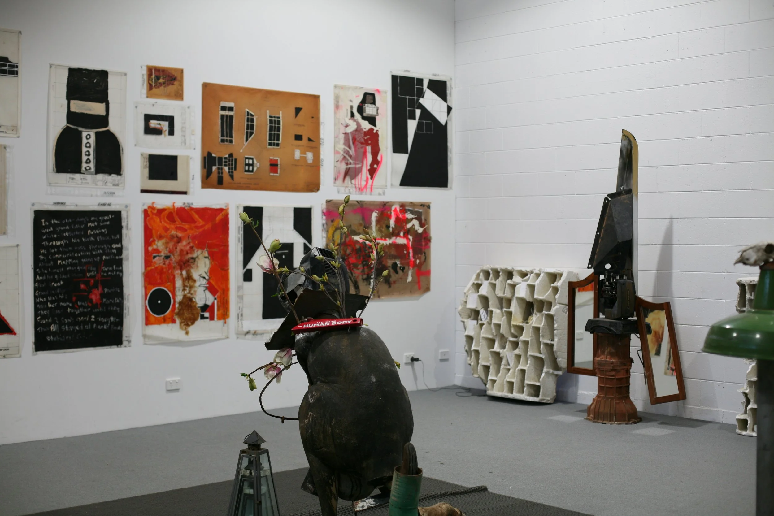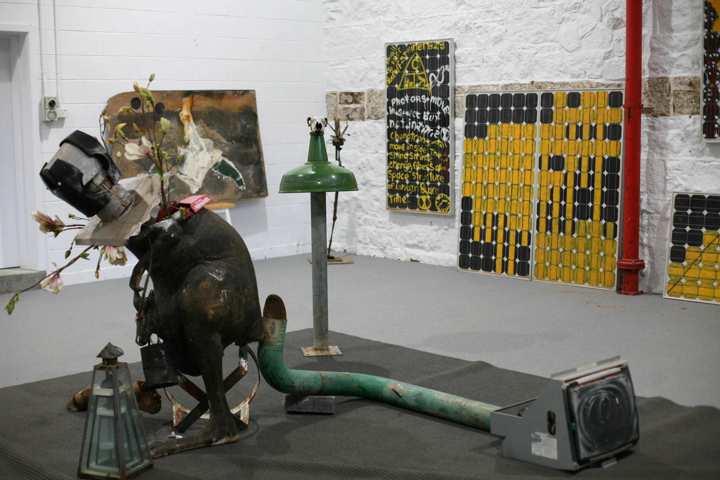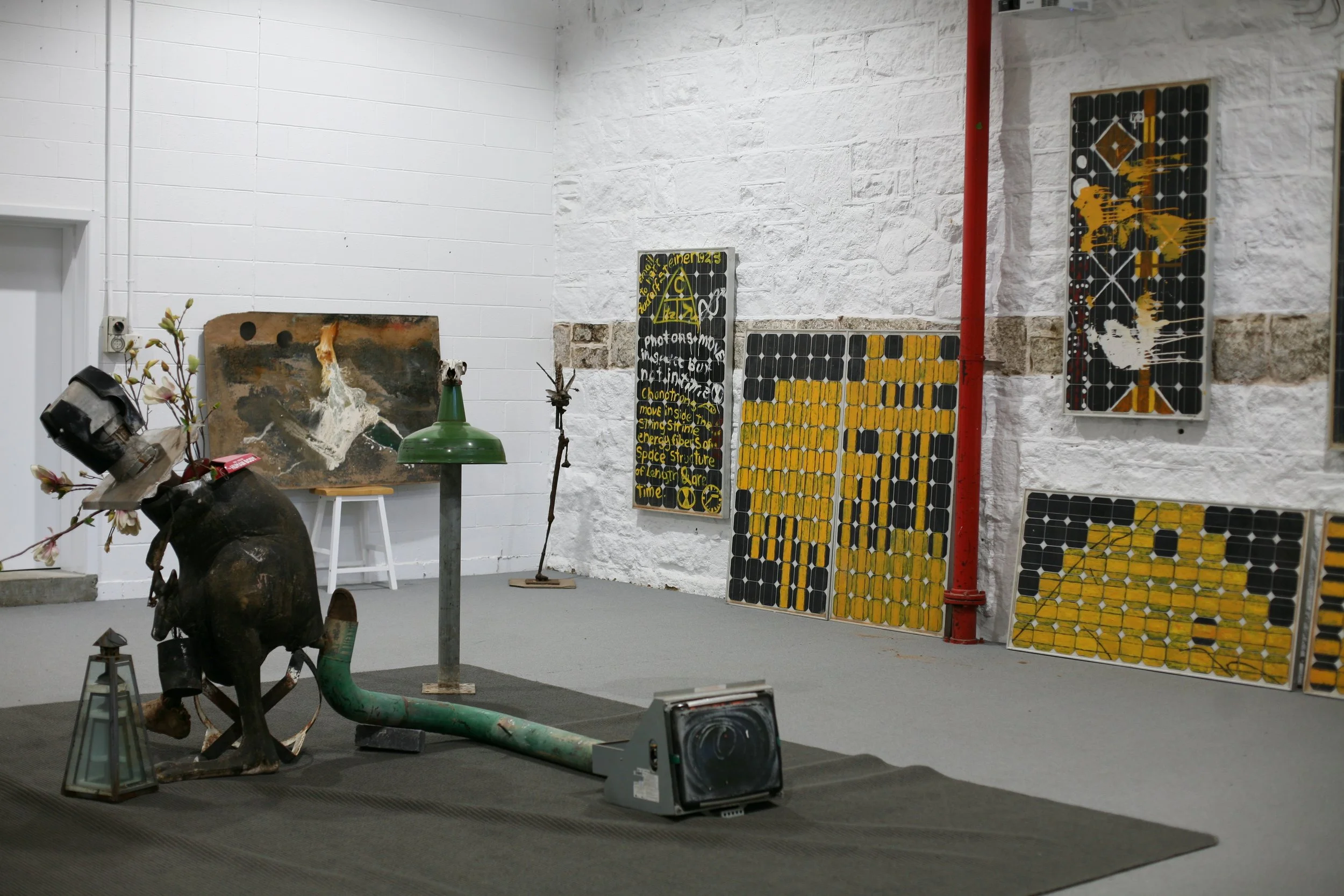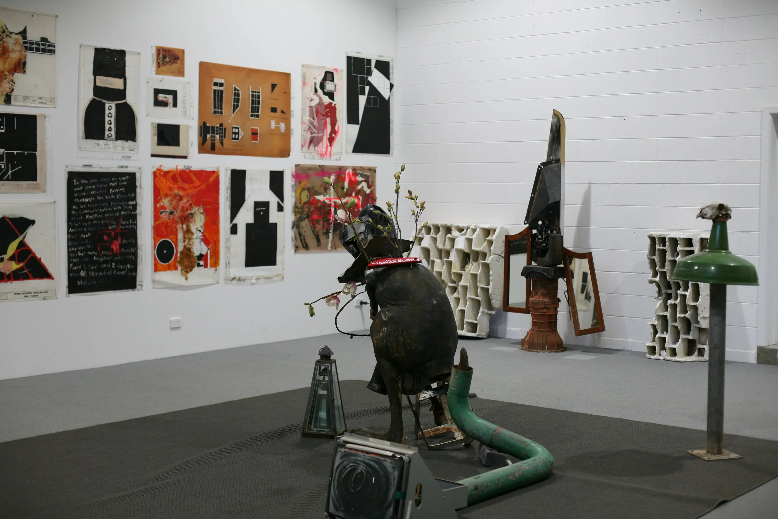 This exhibition disturbs the complacent experience of time by reorienting history into a synergy of absurd conjunctions and composites of language. ‘Installation’ becomes a simulation for the purpose of the public’s sensory surrender to art in a time of technological reversal; art drawn from the morphic field of de-constructed memory, promoting its own and future systems.