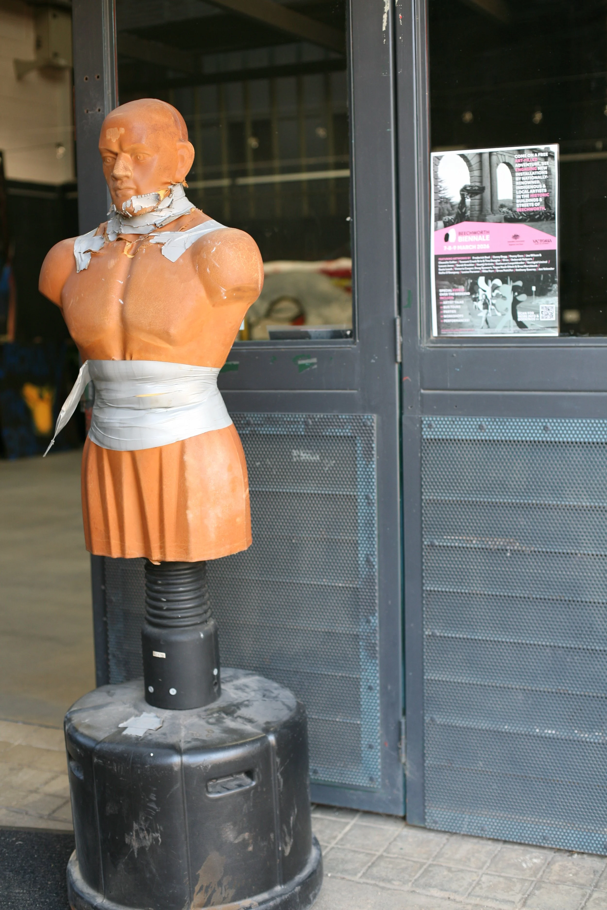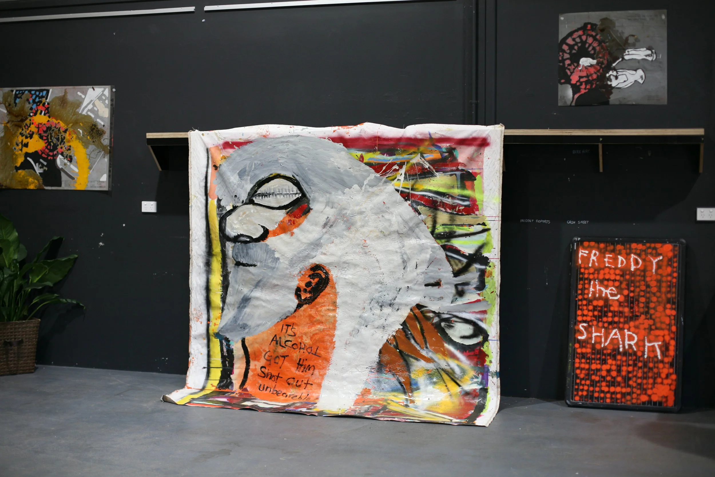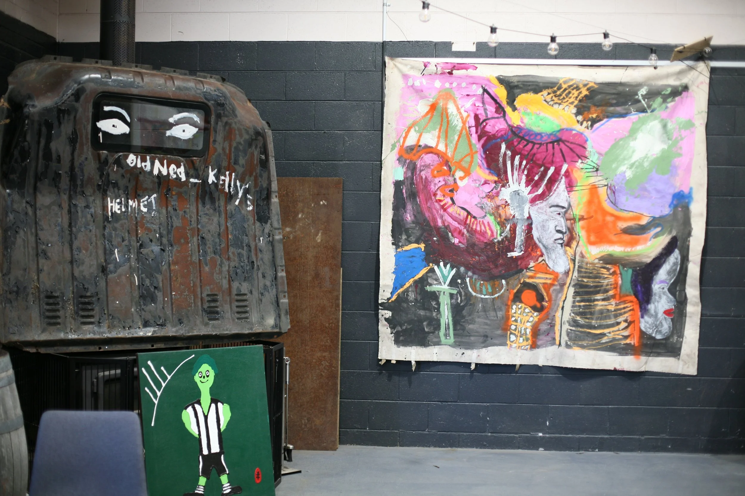 Her Majesty's Prison (To remove the armour and expose the skin beneath). A collaboration between Tennant Creek Brio Artists Fabian Brown, Lindsay Nelson, Rupert Betheras, Joseph Williams, Gary Sullibane, Lévi McLean, Eleanor Dixon and collaborators Tina Douglas and Peter Webster.